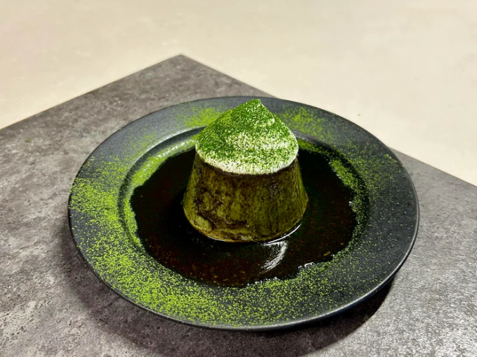 The rich and flavorful dark tea pudding, inspired by the region where ROKUSAI originated, offers a profound and delightful culinary journey.